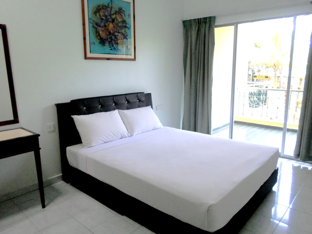 The Superior Room is a studio type room, spacious with a balcony facing the breathtaking view of the Teluk Batik Beach. This room comprises of 1 Queen bed, Bedside Tables, TV, mini refrigerator and kettle.