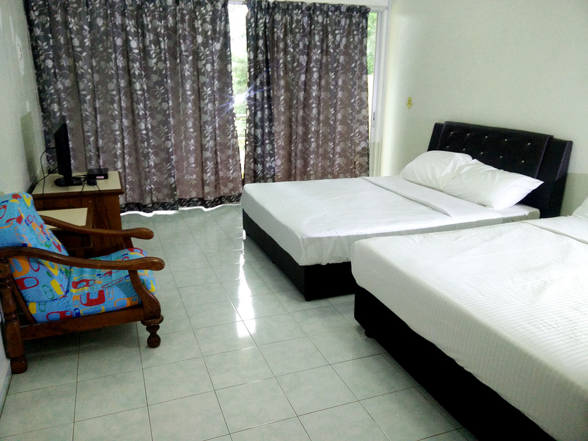 The Deluxe Quad Room is a studio type room, spacious with a balcony facing the breathtaking view of the Teluk Batik Beach. This room comprises of 2 Queen beds, Bedside Tables, TV, mini refrigerator and kettle.